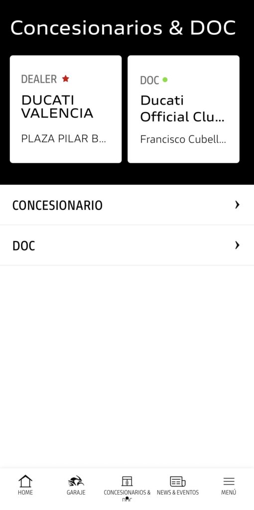 - Por ultimo debes acceder a la sección Concesionario & DOC y solicitar unirte al Ducati Official Club Valencia.